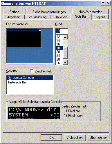 der Rasterschrift die TrueType schrift, kann man das DOS-Fenster vergrößern.
